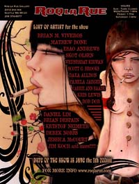 June: Erotic. Group show w/ Vera Akotuah, Glenn Barr, Gary Baseman, Michael Berkowitz, James Bidgood, Joe Berzotta, Newton Burcham, Michael Caines, Joseph Cavalieri, Alexis Covato, Mark Ensslin, Jefferson Hayman, Ryan Heshka, John Hendriks, Robert Kramer, Marcus Letherdale, Niagra, Alfonso Nieto, Shag, Frank Sheehan, Rupert Jansen Smith, DK Stone, Brian Viveros, Carolyn Weltman. Orbit Gallery. Edgewater, NJ