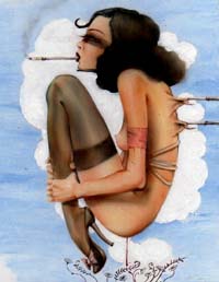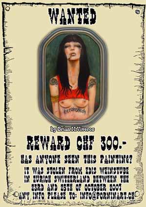 still missin' und wanted - brian's painting: heroin sheek. stolen from edi's weinstube (museum of porn in art), zürich, switzerland.